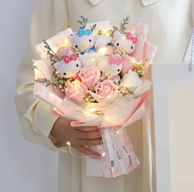 Versatile Uses: Whether it's for gifting, decorating, or collecting, our bouquet is perfect for any occasion. Use it as a heartfelt gift for birthdays, Valentine's Day, or simply as a charming addition to your Hello Kitty collection.
