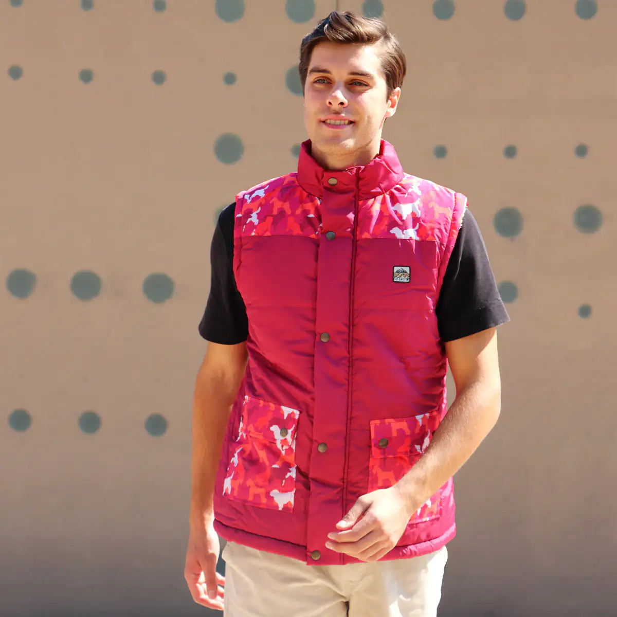 DESIGN: With its elasticated hem, the lightweight insulating vest adapts to fit the body perfectly. The arm holes fit comfortably around the shoulders, ensuring the vest moves with your body. The special dog camouflage patterns give this fleece jacket a natural sporty look.