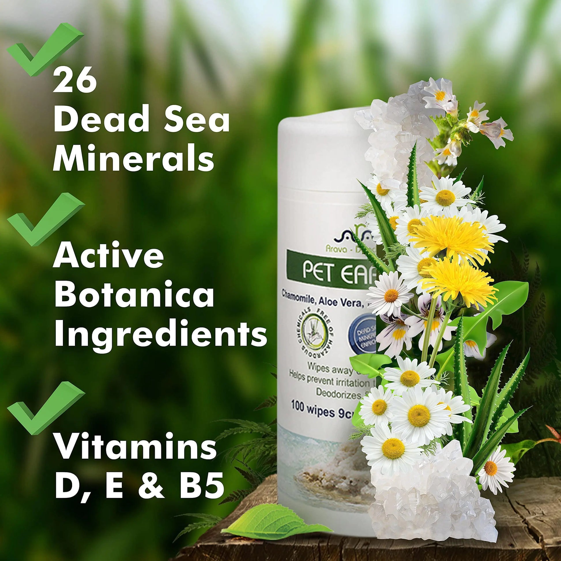 INVEST IN AN ALL NATURAL PUPPY WIPES PACK infused in skin-safe Chamomile, Aloe Vera, Mallow, Liquorice, Burdock, Vitamins E, D, & B5, Dead Sea Minerals and coated in a healthy formula for dogs, cats & pets of all breeds