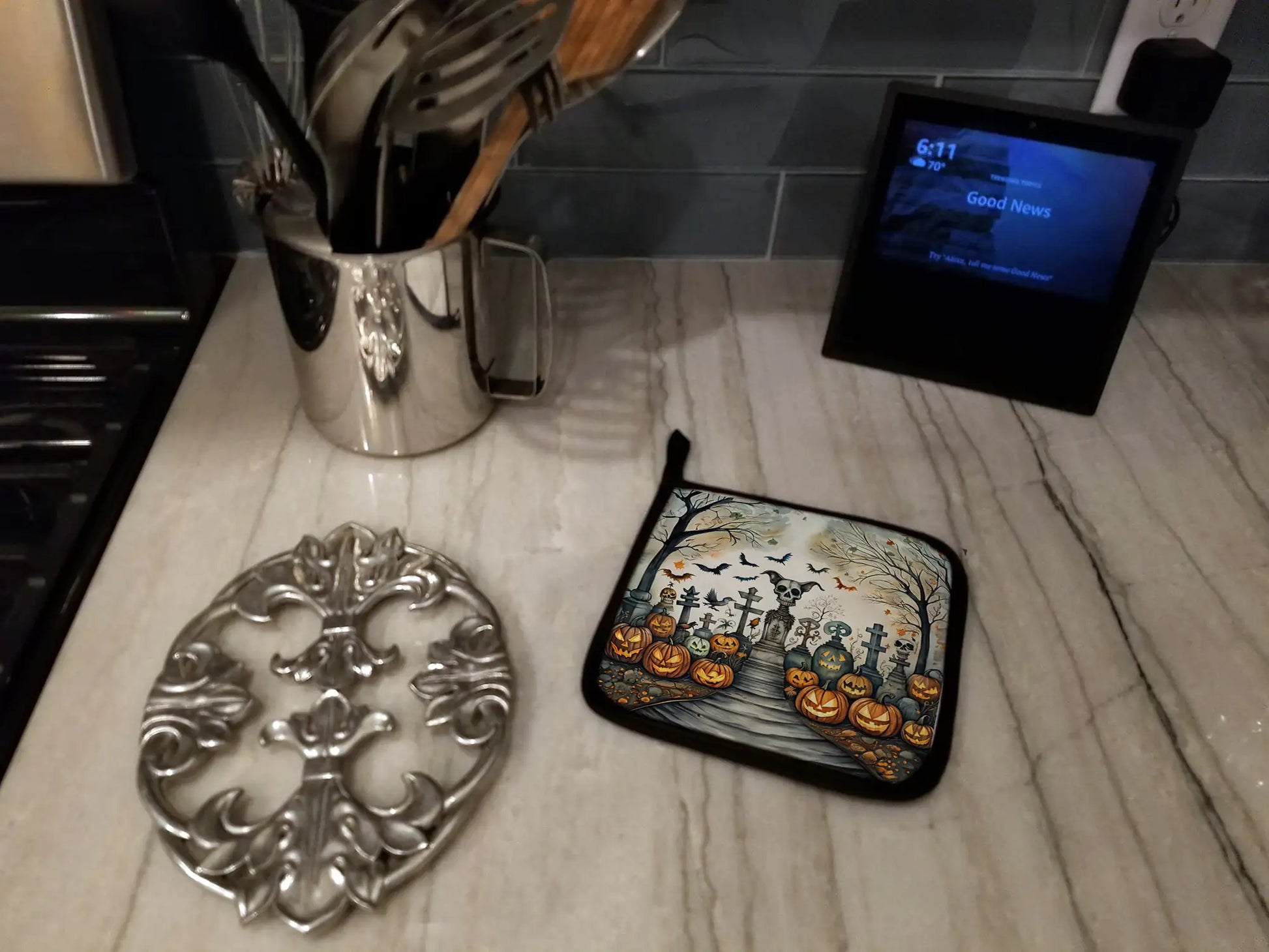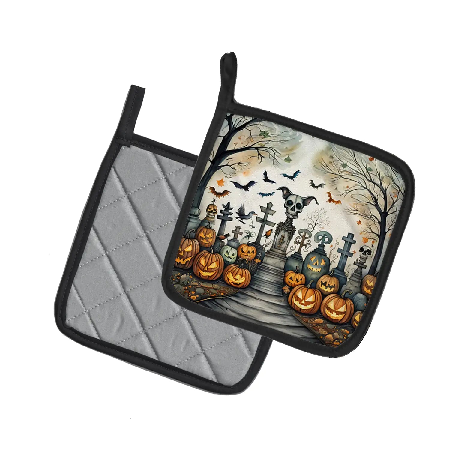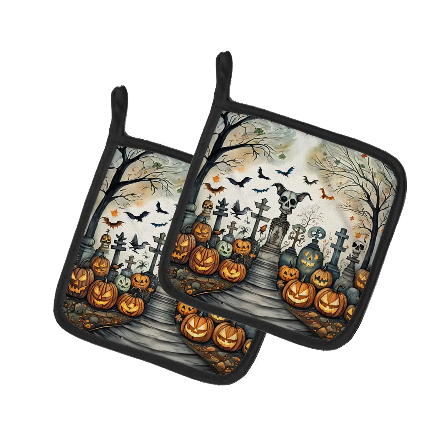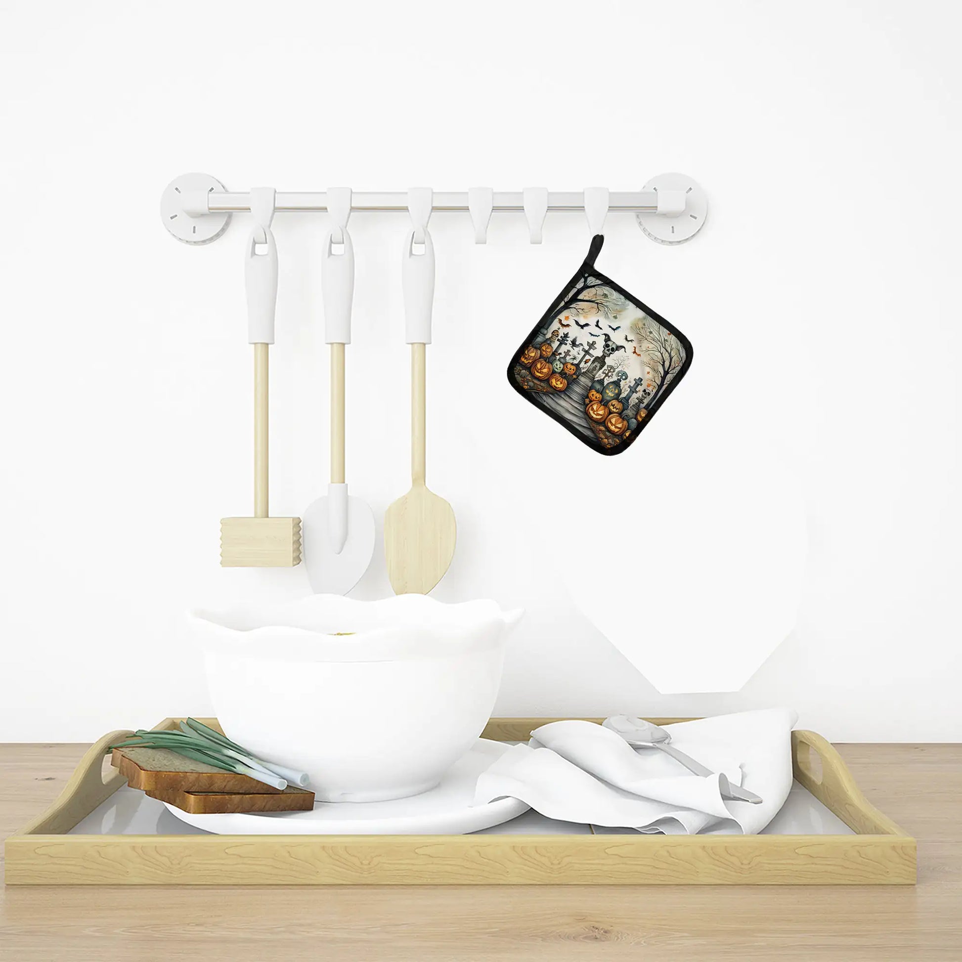 Pet Cemetery Spooky Halloween Pair of Pot Holders