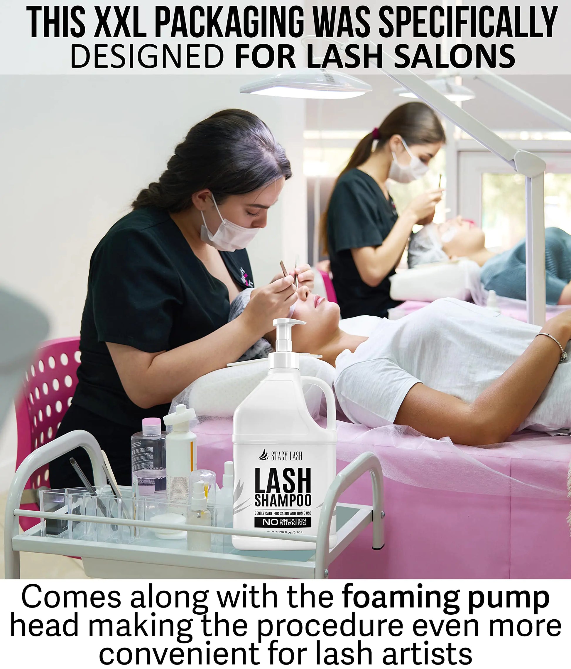 STACY LASH Eyelash Extension Shampoo 1US Gal / 128 fl.oz. / 3.78L / Eyelid Foaming Cleanser/Safe Wash for Extensions & Natural Lashes/Supplies for Professional & Home Use / 50 Aftercare Cards 1 Gallon (Pack of 1)